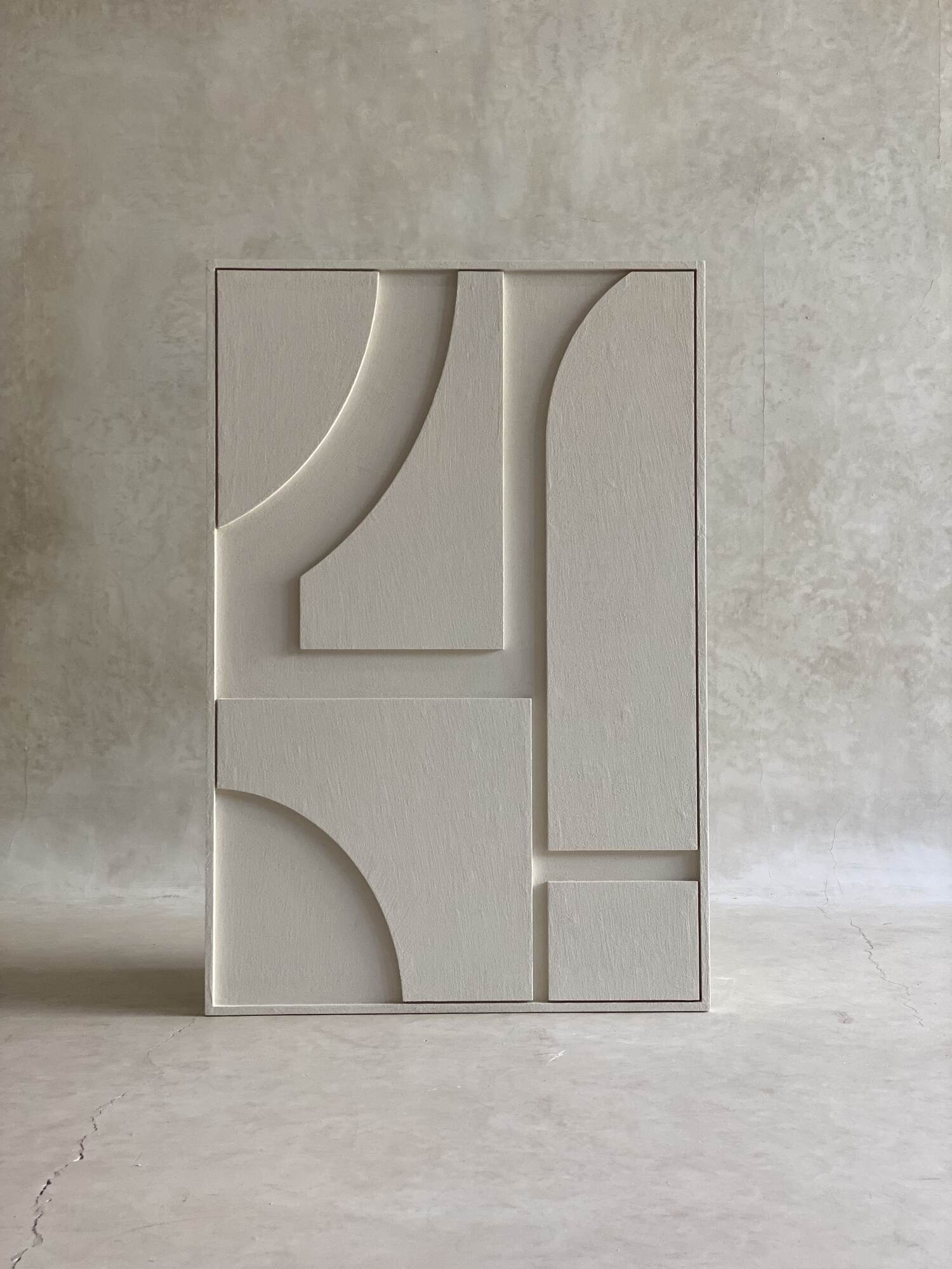 Ce tableau en bois présente une composition géométrique minimaliste, où des formes rectangulaires et circulaires se superposent harmonieusement. La finition texturée du bois, avec ses lignes subtiles, ajoute une dimension tactile à l’œuvre. Les différentes sections du tableau sont découpées de manière soignée, offrant un jeu intéressant de volumes et de profondeur. La palette de couleurs neutres et terreuses confère à l’ensemble une allure sophistiquée et moderne, tout en apportant une touche de chaleur et d’élégance à l’espace. Ce type de design peut s’intégrer parfaitement dans un environnement contemporain ou épuré.