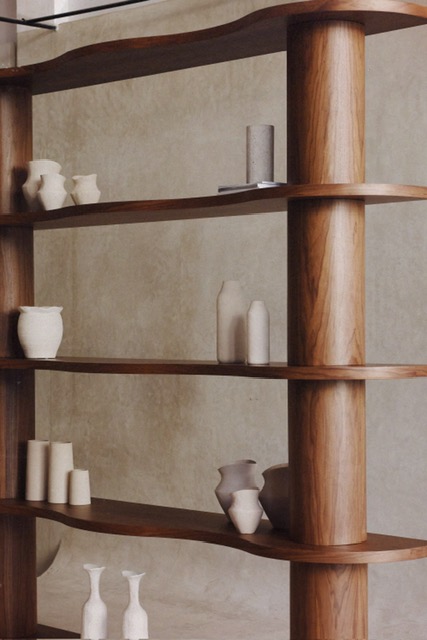Cette bibliothèque en bois  plaqué incarne l’alliance parfaite entre modernité et matériaux nobles. Sa structure soignée avec des étagères courbes soutenues par de solides colonnes en bois crée une silhouette sculpturale qui apporte une véritable personnalité à votre espace. Le bois massif plaqué confère à chaque étagère une texture riche et naturelle, tout en offrant une grande robustesse et une finition impeccable.