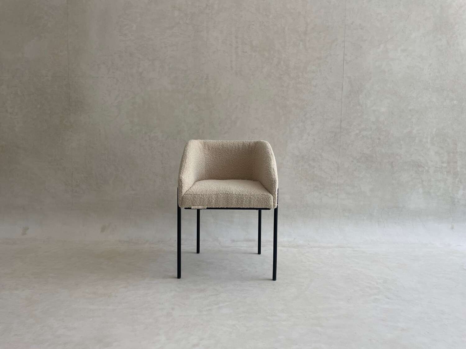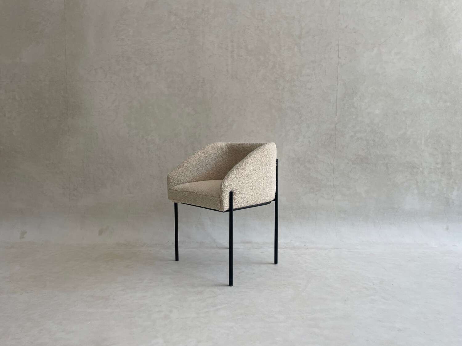 Cette chaise au design épuré repose sur une structure fine en métal thermolaqué, offrant robustesse et stabilité tout en conservant une grande légèreté visuelle. Son assise et son dossier enveloppants sont entièrement rembourrés et revêtus d’un tissu bouclette doux et texturé, garantissant un excellent confort. L’équilibre entre lignes minimalistes et matières chaleureuses en fait une pièce idéale pour une salle à manger, un bureau ou un espace d’accueil contemporain.