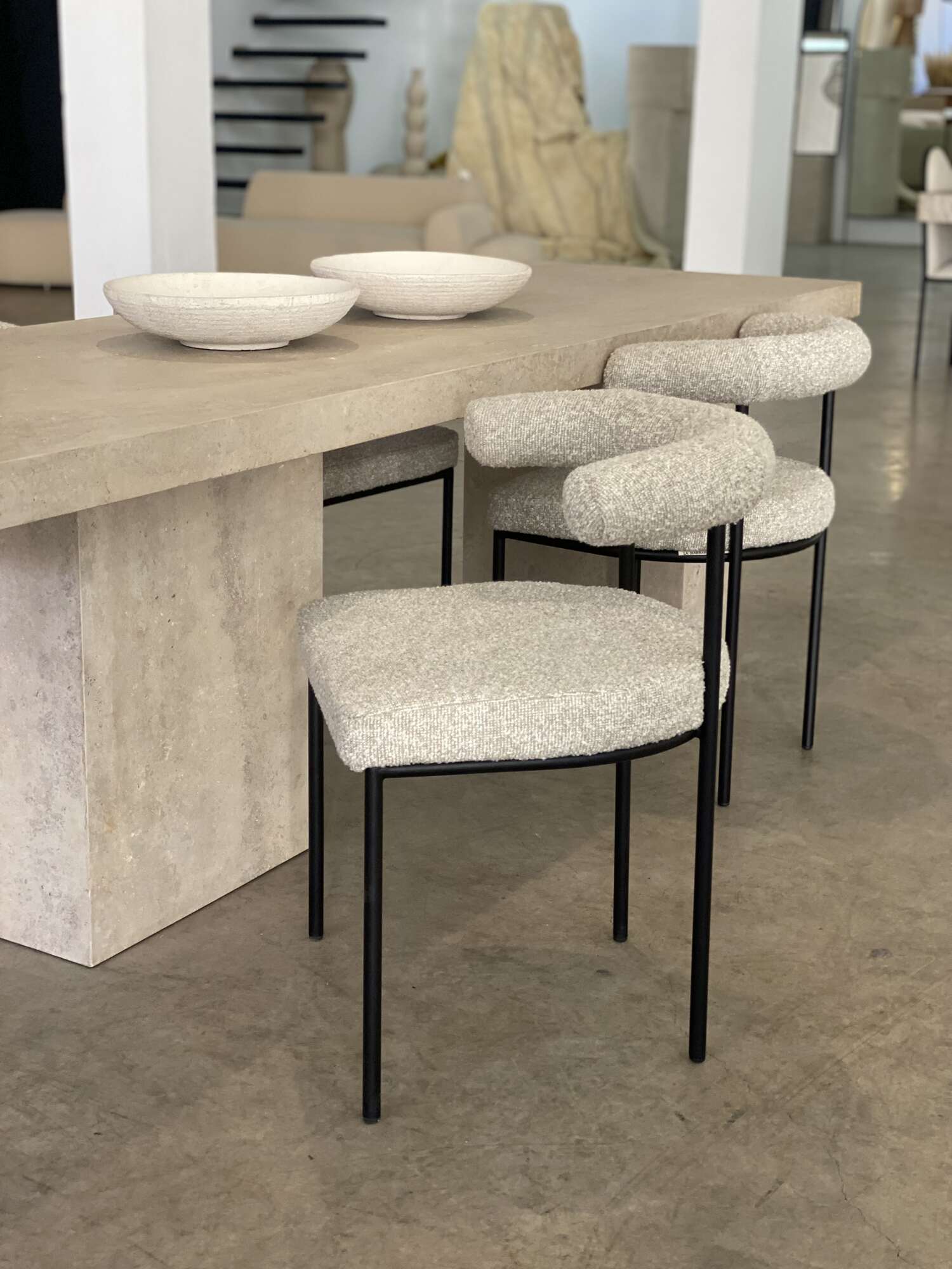 Alliant design contemporain et confort, cette chaise se distingue par son assise et dossier recouverts de tissu bouclette doux et chaleureux. Sa structure en métal thermolaqué noire apporte légèreté et élégance, tout en garantissant robustesse et stabilité. Parfaite pour sublimer une salle à manger ou un bureau, elle apporte une touche moderne et raffinée à votre intérieur.