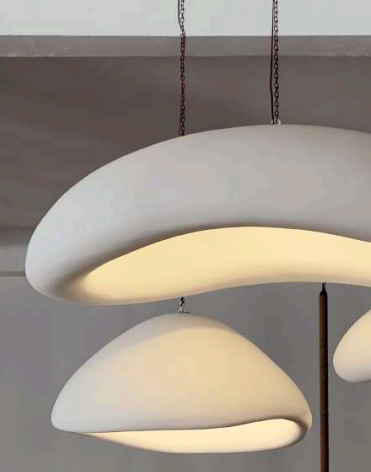 Apportez une touche sculpturale et chaleureuse à votre intérieur avec cette suspension en résine aux courbes organiques. Composée de trois abat-jours aux formes douces et asymétriques, elle diffuse une lumière délicate et enveloppante, idéale pour créer une ambiance apaisante dans un salon, une salle à manger ou un espace de travail.