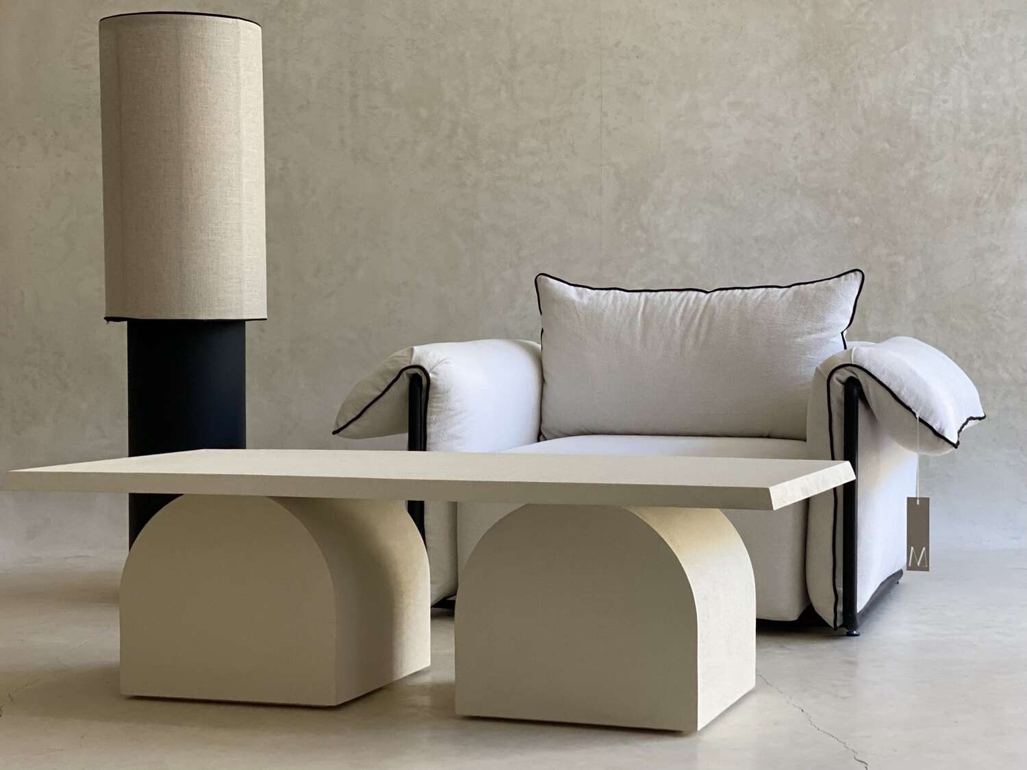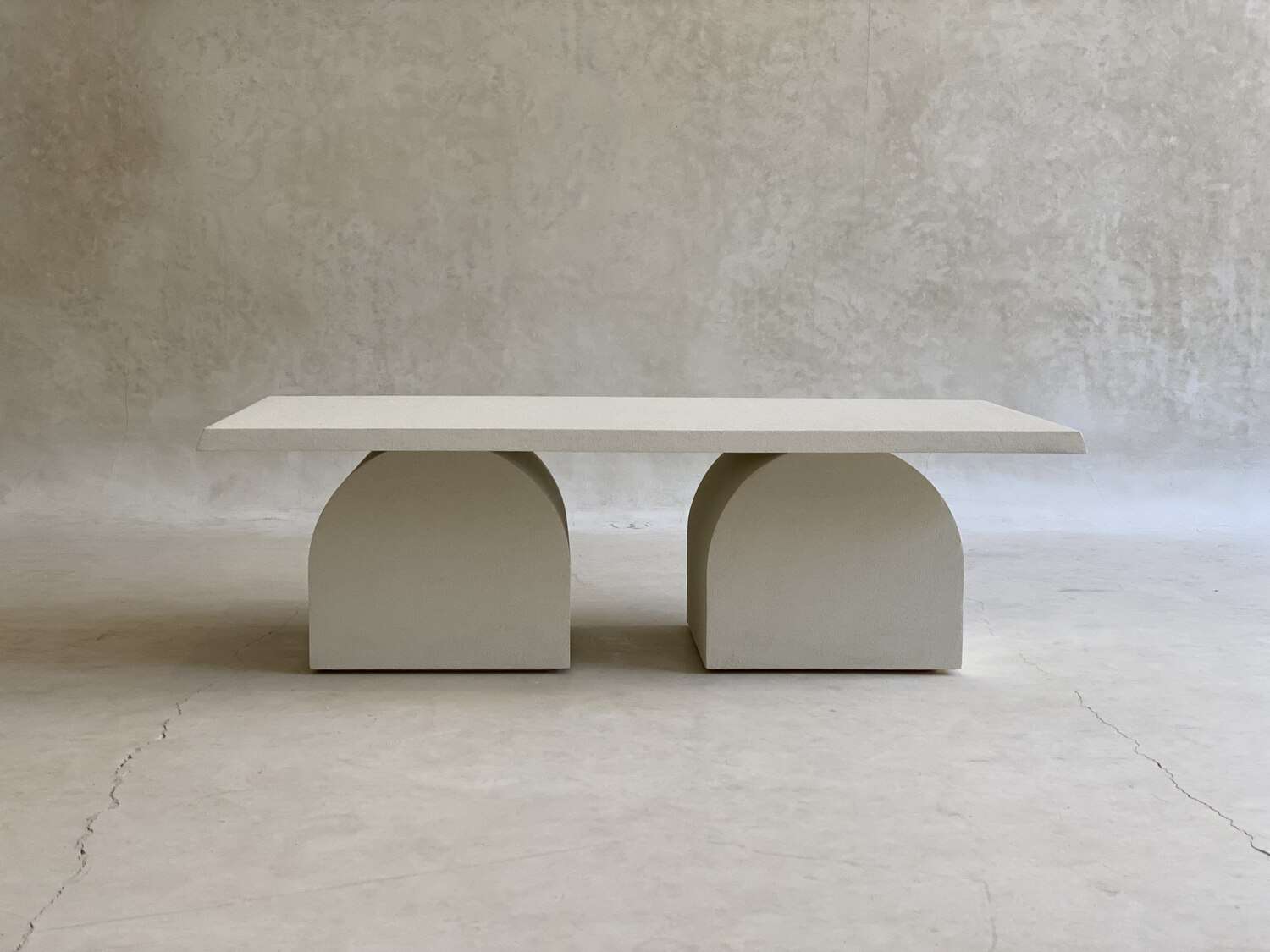 Cette table basse se distingue par son design moderne et sculptural, avec un plateau rectangulaire soutenu par deux piètements en forme d’arche. Réalisée en bois, elle présente une finition texturée qui apporte profondeur et caractère à votre espace de vie. Son style minimaliste et contemporain s’intègre parfaitement dans un intérieur élégant et épuré.