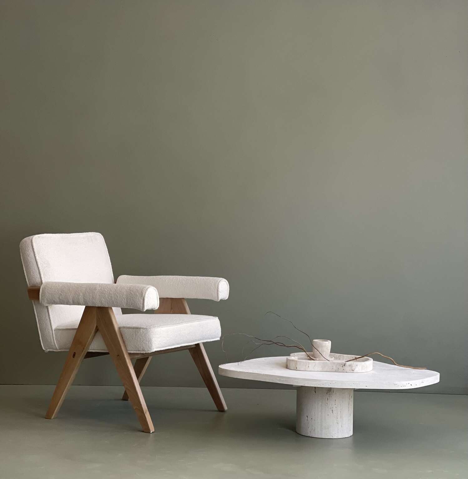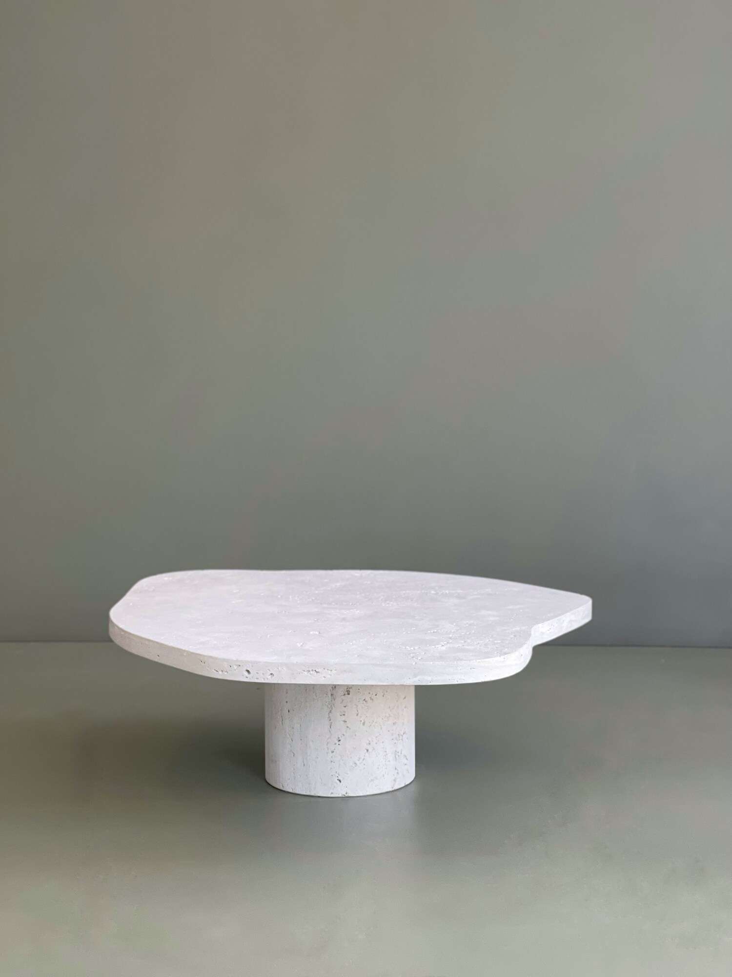 Cette table basse en travertin séduit par son design organique et moderne. Avec son plateau aux formes irrégulières et sa base cylindrique solide, elle apporte une touche contemporaine et unique à votre intérieur. Le travertin, matériau naturel et intemporel, offre une texture douce et une finition élégante qui s’intègre parfaitement dans différents styles de décoration. Sa silhouette épurée et sa simplicité graphique en font une pièce maîtresse idéale pour apporter sophistication et caractère à votre salon.