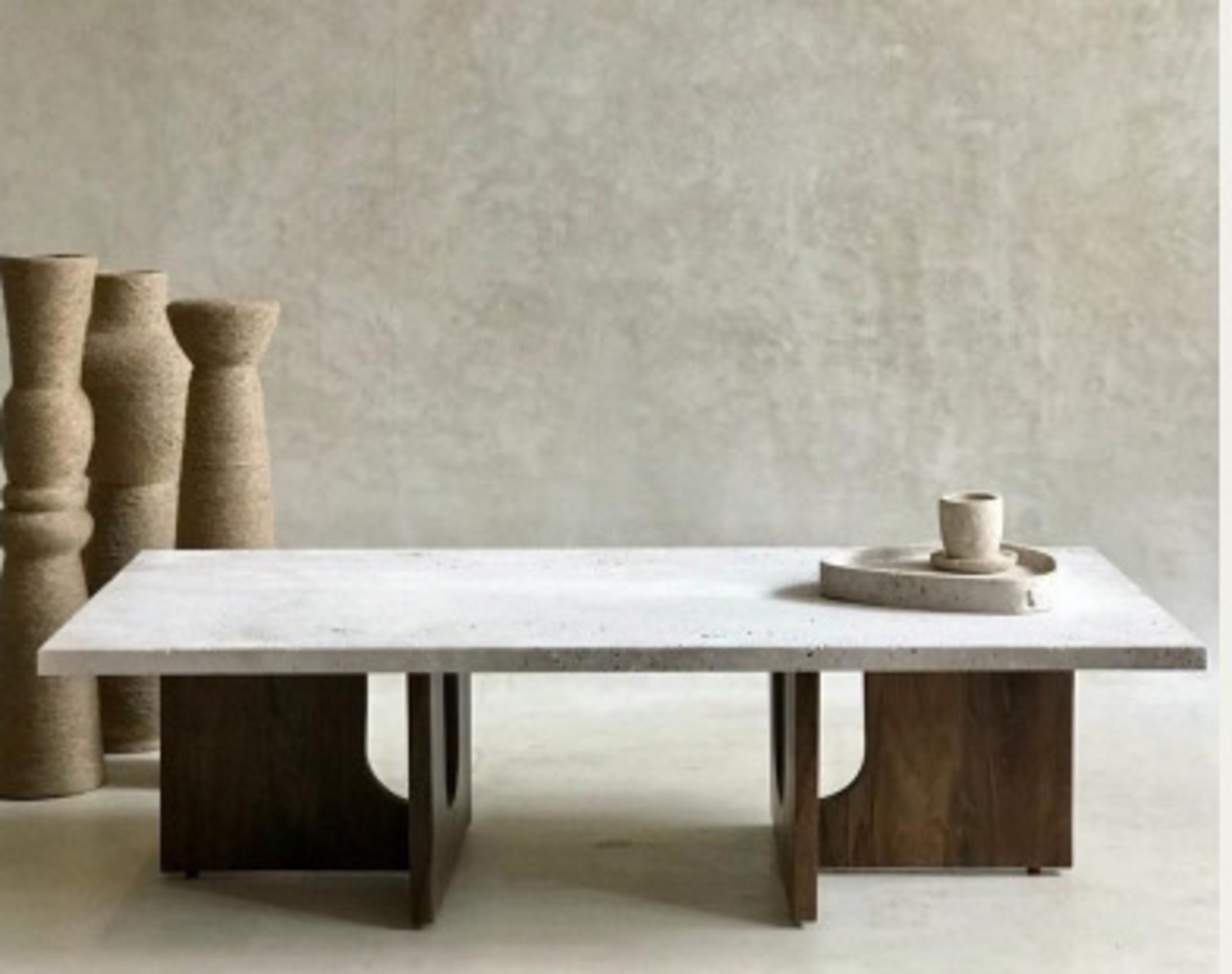 Cette table basse combine la beauté naturelle du travertin et la chaleur du bois plaqué pour offrir un design à la fois moderne et intemporel. Le plateau en travertin, aux finitions lisses et aux nuances douces, repose sur une base en bois plaqué aux lignes géométriques épurées. Le contraste entre la pierre et le bois crée un équilibre parfait, apportant sophistication et fonctionnalité à votre espace.